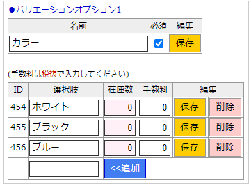 名前を登録して「必須」にチェックすると、このオプションは選択必須になります。